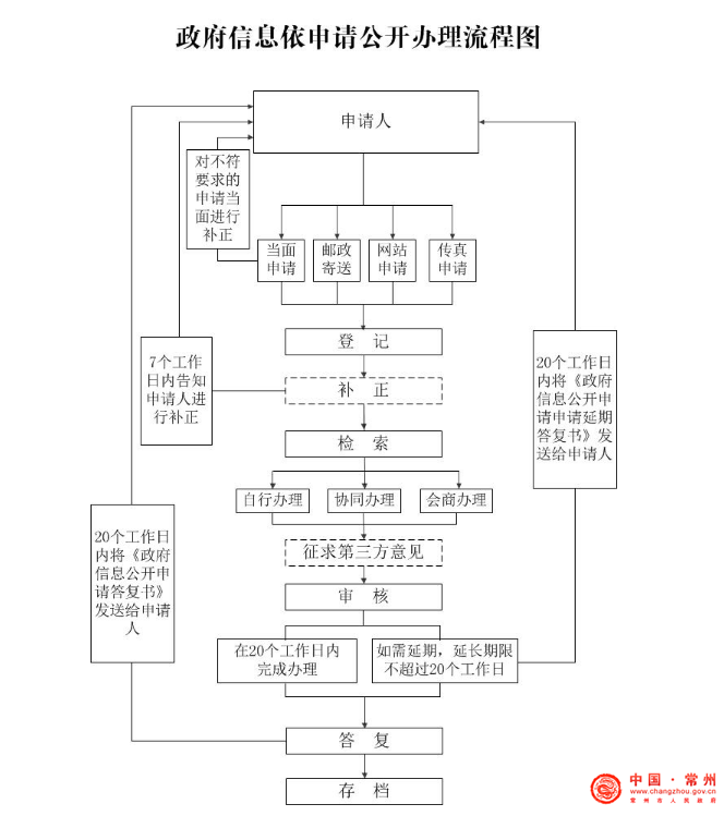 3、在線申請:申請人進入常州市人民政府門戶網(wǎng)站首頁-“政務公開”欄目-“依申請公開”頁面,在線填寫電子版《常州市人民政府信息公開申請表》提交申請。