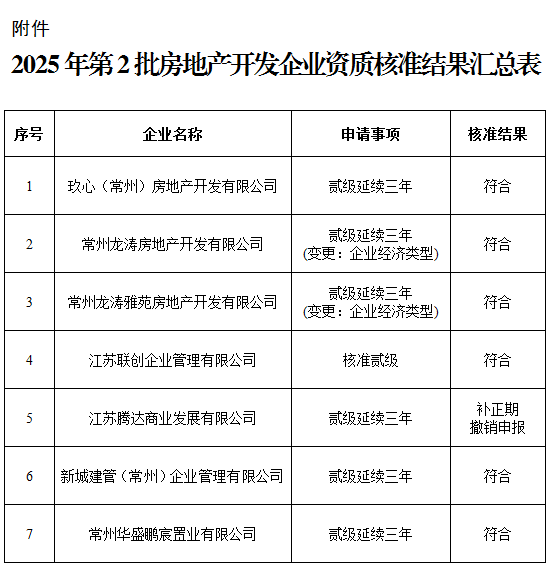 附件:2025年第2批房地產(chǎn)開發(fā)企業(yè)資質(zhì)核準(zhǔn)結(jié)果匯總表