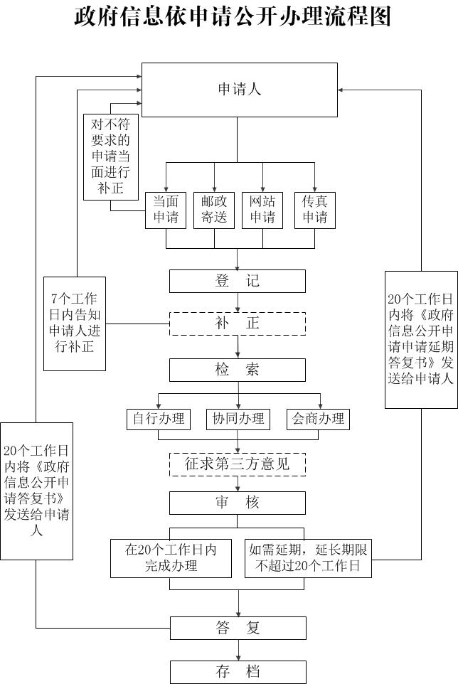 本機關(guān)處理政府信息公開申請的流程可以參見流程圖: