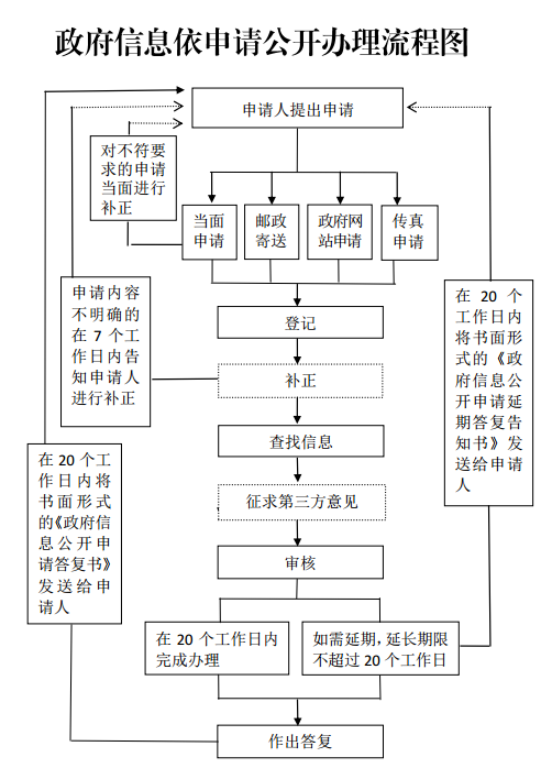 本機關(guān)處理政府信息公開申請的流程可以參見流程圖: