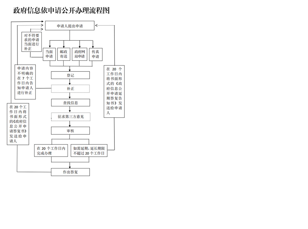 4、傳真申請(qǐng):申請(qǐng)人通過傳真方式提出申請(qǐng)的,請(qǐng)注明“政府信息公開申請(qǐng)”字樣,傳真至本機(jī)關(guān)政府信息公開工作機(jī)構(gòu)。