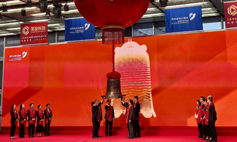 3月4日,江蘇常友環(huán)保科技股份有限公司(簡(jiǎn)稱“常友科技”,股票代碼301557.SZ)在深交所創(chuàng)業(yè)板上市。副市長(zhǎng)徐軍和常友科技董事長(zhǎng)劉文葉等共同為企業(yè)上市敲鐘。