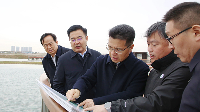 在常州市新一輪太湖綜合治理重點工程項目——陽湖凈水廠現(xiàn)場,王劍鋒察看項目建設(shè),詢問工期進(jìn)度,了解全市污水收集處理能力情況。王劍鋒指出,太湖治理問題在水里,根子在岸上。要倒排工期、掛圖作戰(zhàn),確保項目按時投運,進(jìn)一步提升城區(qū)生活污水處理能力。要聚焦控源減污全力攻堅,進(jìn)一步深化工業(yè)污染、城鄉(xiāng)污水、農(nóng)業(yè)面源治理,持續(xù)削減入河、入湖污染負(fù)荷,推動生產(chǎn)生活方式綠色轉(zhuǎn)型。