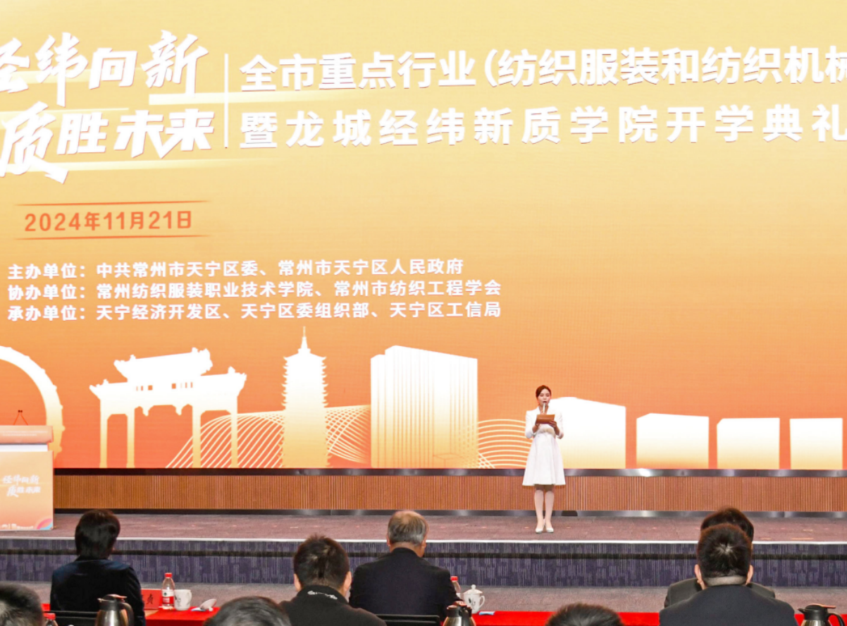 為進(jìn)一步深化產(chǎn)業(yè)鏈黨建助力高質(zhì)量發(fā)展,11月21日下午,“經(jīng)緯”向“新”“質(zhì)”勝未來——全市重點行業(yè)(紡織服裝和紡織機(jī)械)產(chǎn)業(yè)鏈黨建賦能會議暨龍城經(jīng)緯新質(zhì)學(xué)院開學(xué)典禮在天寧區(qū)工業(yè)互聯(lián)網(wǎng)大廈舉行,活動以“新”為方向,以“質(zhì)”為基石,匯聚行業(yè)精英、共謀發(fā)展大計,繪制出了紡織服裝機(jī)械行業(yè)發(fā)展的新藍(lán)圖。