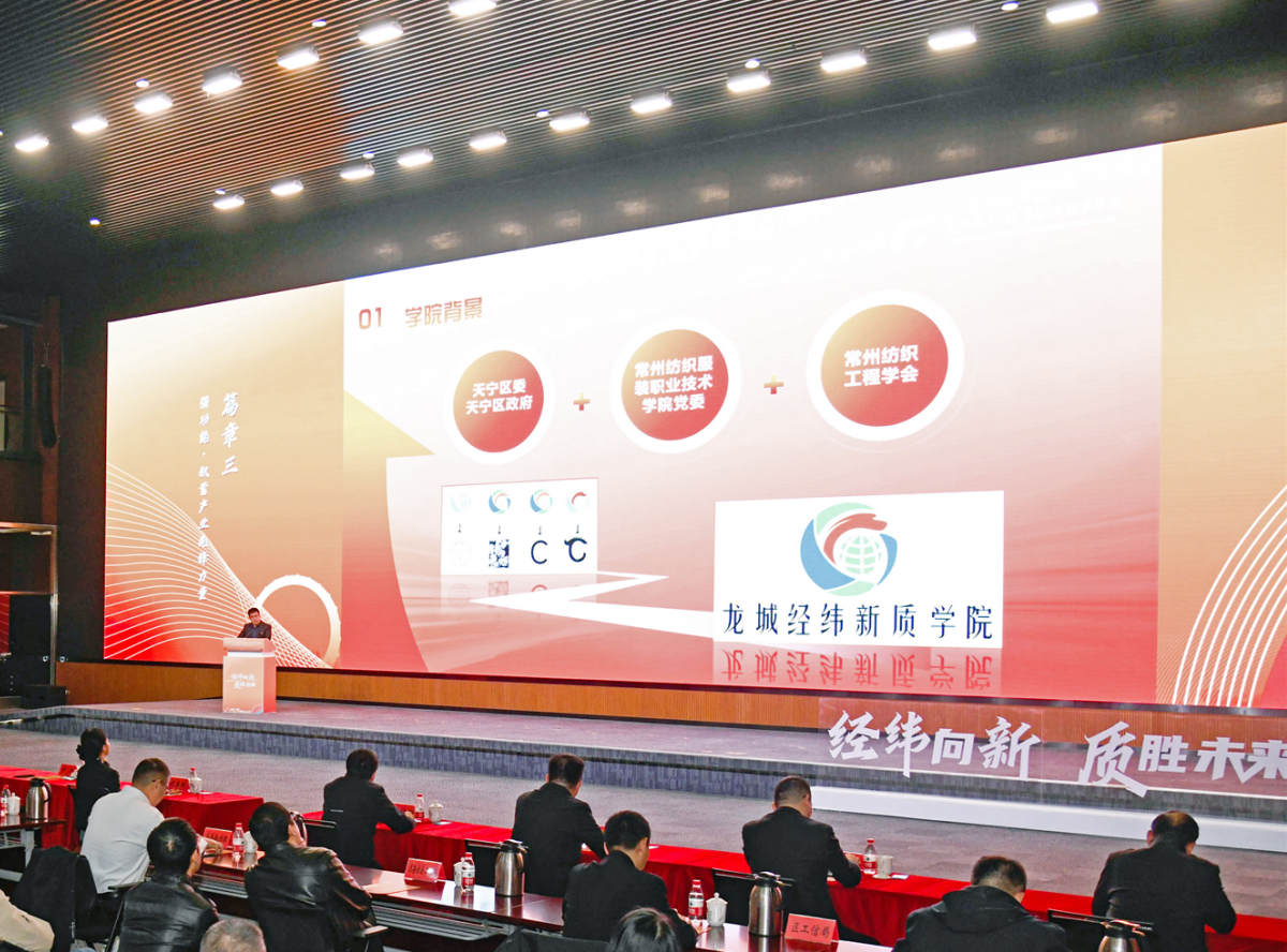 龍城經(jīng)緯新質(zhì)學(xué)院由常州市天寧區(qū)委、區(qū)政府、常州紡織服裝職業(yè)技術(shù)學(xué)院、常州市紡織工程學(xué)會聯(lián)合成立,通過產(chǎn)業(yè)鏈黨委建立政府、學(xué)校、企業(yè)和行業(yè)之間的來訪、交流與合作,在對外交流中增進(jìn)了解、減少壁壘,確保溝通的有效性,共創(chuàng)多贏格局。學(xué)院性質(zhì)為常紡院院內(nèi)掛牌二級學(xué)院,由常紡院提供專業(yè)性師資力量支持,面向天寧區(qū)乃至全市產(chǎn)業(yè)鏈企業(yè)提供思想政治教育、對口專業(yè)培訓(xùn)、實訓(xùn)實習(xí)指導(dǎo)、技術(shù)研發(fā)咨詢等服務(wù)。