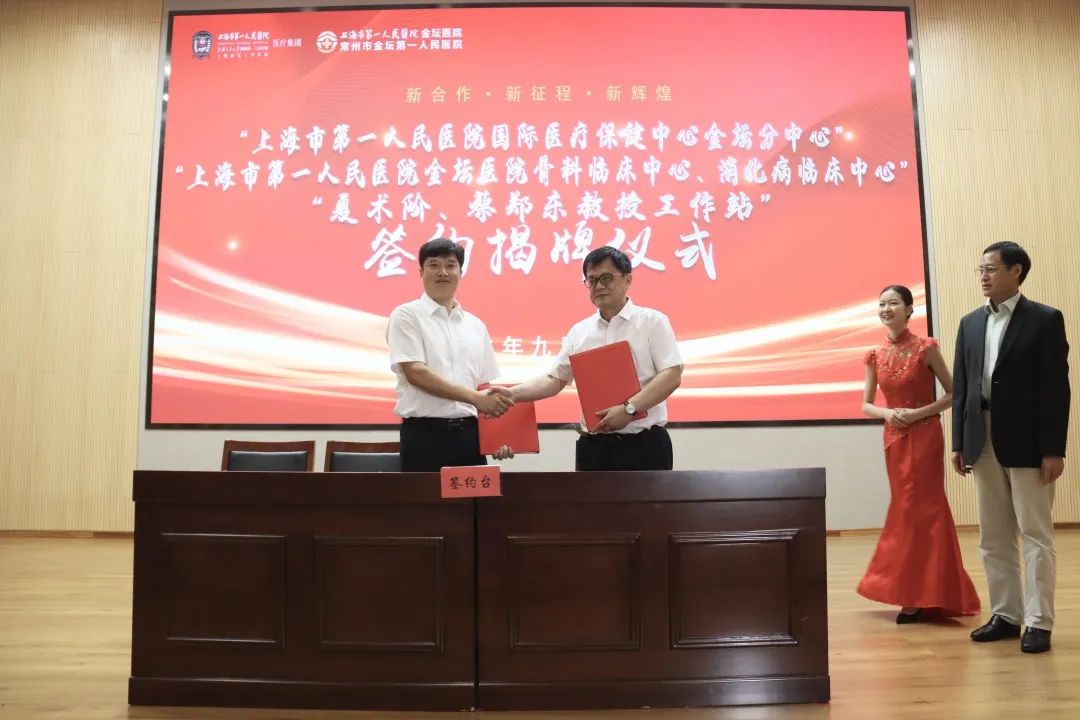9月1日上午,金壇區(qū)舉行“上海市第一人民醫(yī)院國(guó)際醫(yī)療保健中心金壇分中心、上海市第一人民醫(yī)院金壇醫(yī)院骨科臨床中心、消化病臨床中心”及“夏術(shù)階、蔡鄭東教授工作站”簽約揭牌儀式,這標(biāo)志著“院府合作”再結(jié)碩果。上海市第一人民醫(yī)院黨委書記秦凈,金壇區(qū)領(lǐng)導(dǎo)陸秋明、劉國(guó)新、徐俊參加活動(dòng)。