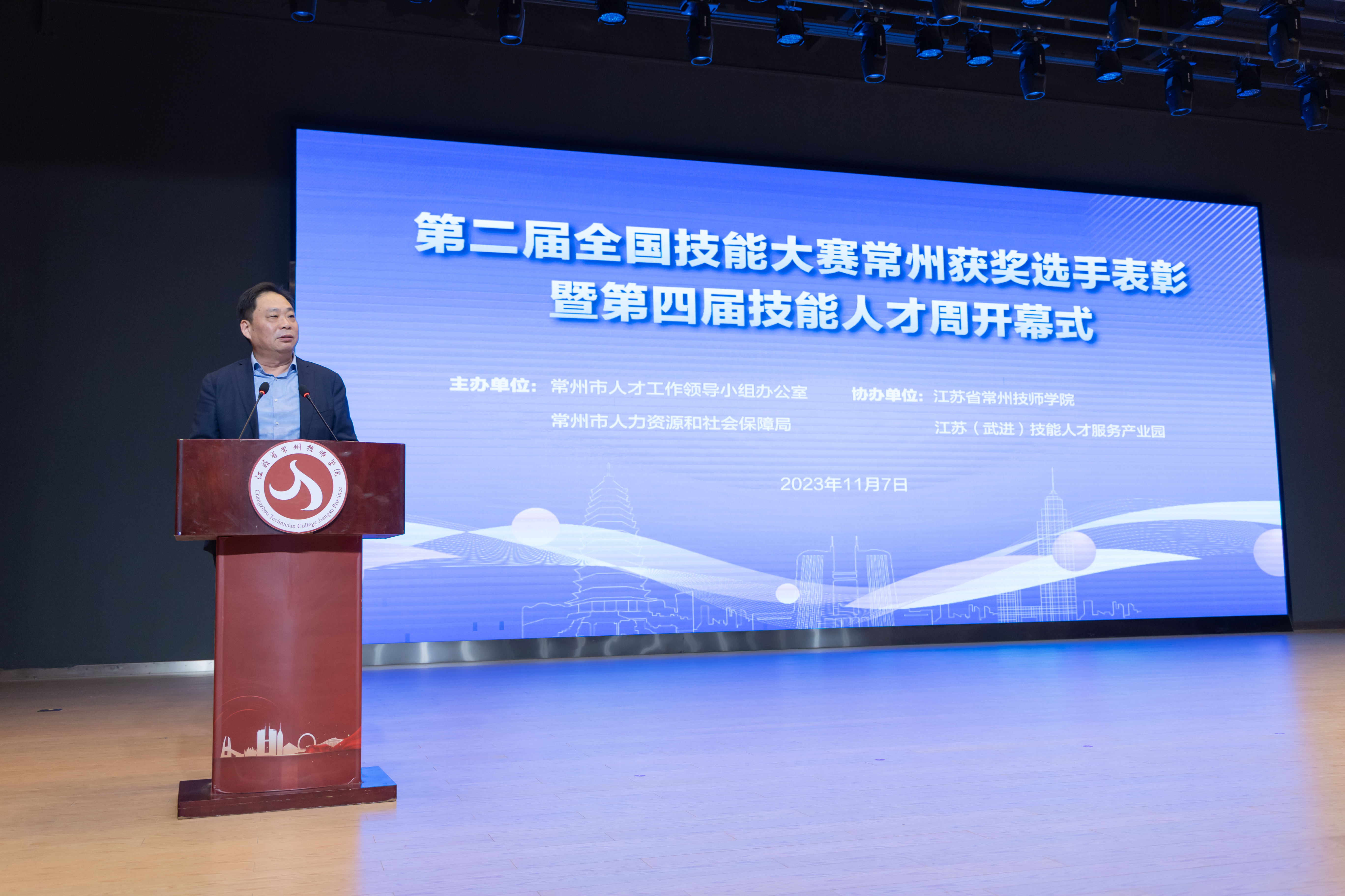 11月7日,第二屆全國技能大賽常州獲獎選手表彰暨第四屆技能人才周開幕式在江蘇省常州技師學(xué)院舉辦,人社部職建司副司長劉新昌、省人社廳副廳長顧潮參加活動。
