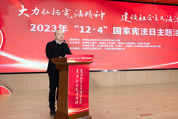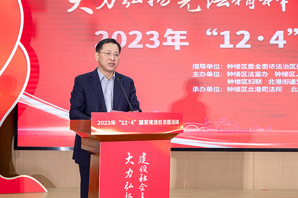 韓建明作總結(jié)講話,他指出,近年來,區(qū)委、區(qū)政府堅持以習(xí)近平新時代中國特色社會主義思想為指導(dǎo),一體推進法治鐘樓、法治政府、法治社會建設(shè),在全市范圍內(nèi)最早探索企業(yè)合規(guī)建設(shè),擦亮“人人服務(wù)、事事周到”的鐘樓營商環(huán)境品牌;在鎮(zhèn)、各街道推廣“民情工作室”,社會治理法治化水平有效提升;全面落實“誰執(zhí)法誰普法”普法責(zé)任制,先后打造“融治理”共享空間、法治蘭園、法律援助步道等一批具有廣泛影響力和傳播力的普法特色陣地。他強調(diào),我們要進一步貫徹落實黨的二十大精神,要堅持和加強黨對憲法工作的全面領(lǐng)導(dǎo),要把貫徹憲法法律落實到黨委決策施策全過程,要加強和完善憲法宣傳教育工作格局,把憲法精神銘刻到公民的內(nèi)心,為奮進新征程匯聚起強大的法治力量。