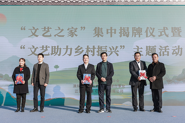12月5日下午,市文聯(lián)“文藝之家”集中揭牌儀式暨“文藝助力鄉(xiāng)村振興”主題活動在溧陽市古縣街道百家塘村順利開展。江蘇省文聯(lián)一級巡視員劉旭東,常州市文聯(lián)黨組書記、主席舒文,溧陽市委常委、宣傳部部長曹俊,溧陽市人民政府副市長、古縣街道黨工委書記錢棟,部分省藝術(shù)家協(xié)會領(lǐng)導(dǎo)、部分常州市藝術(shù)家協(xié)會領(lǐng)導(dǎo)參加活動。